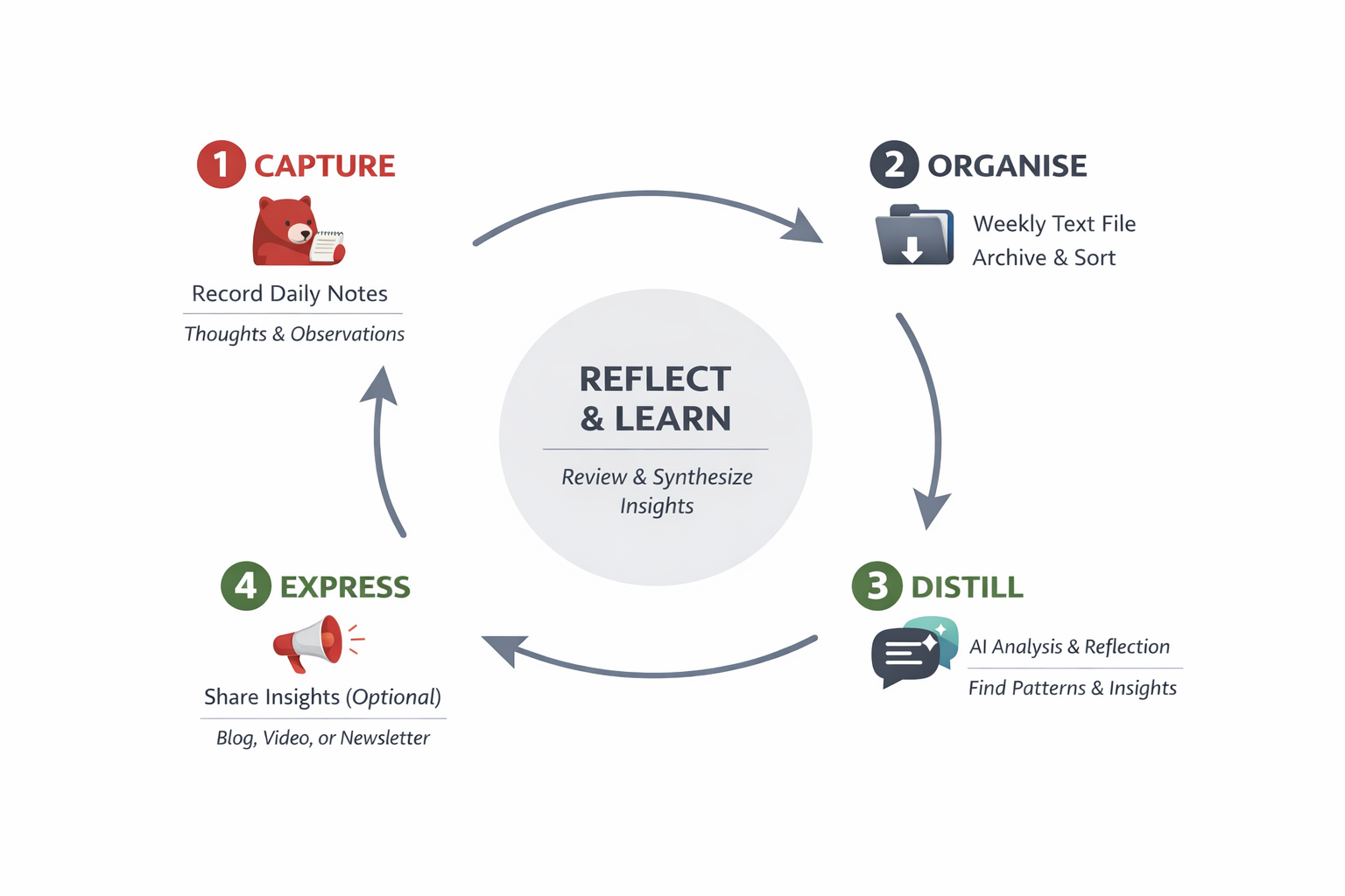 Turn the synthesis into something shareable and consider giving your reflective process some public accountability. A blog post. A video. A newsletter. Maybe a post on X or Threads?